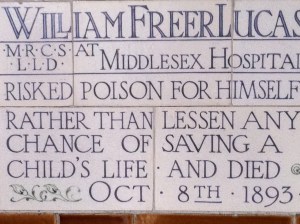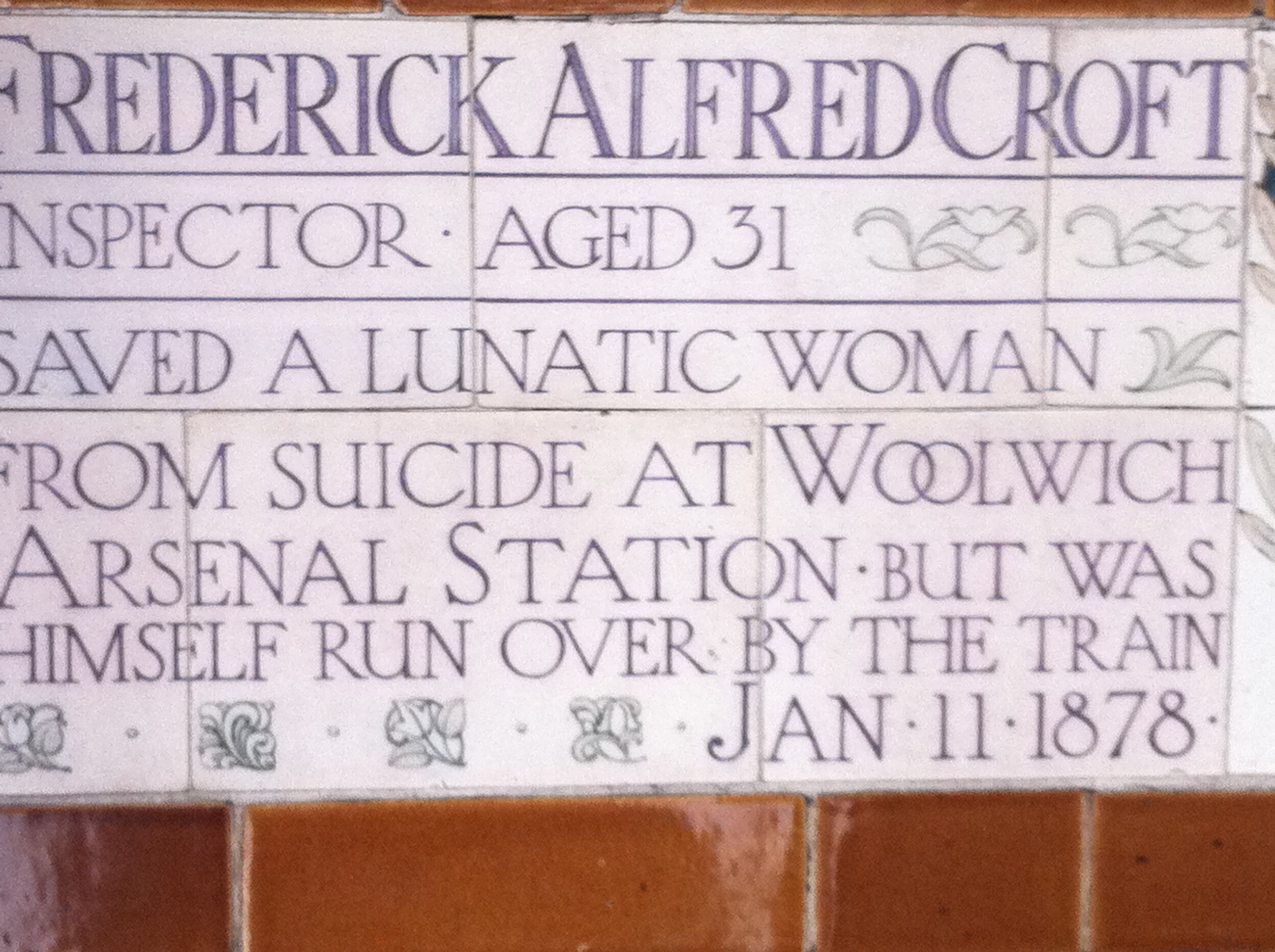 Assuming all is well, I then wait around while the drugs are prepared. This takes an hour or so because, understandable, the NHS doesn’t want to waste money on drugs that are not going to be used. If I’m with my friend, we usually take a spin round the neighbourhood while we wait: have a coffee, buy M&S groceries for the St Paul’s protest, see if there’s anything happening at the Central Criminal Court. Once we visited the Postman’s Park, and looked at the plaques to commemorate people who died saving others. Here are a couple.